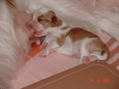 Unser Baby ist da! Am Montag, den 16.06.2008 um 18:40 Uhr erblickte ein bildhübscher Blenheim-Rüde das Licht der Welt. |